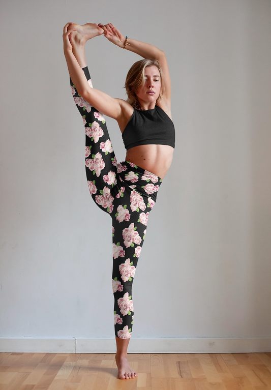 Side-pocket Leggings-Spring Rose