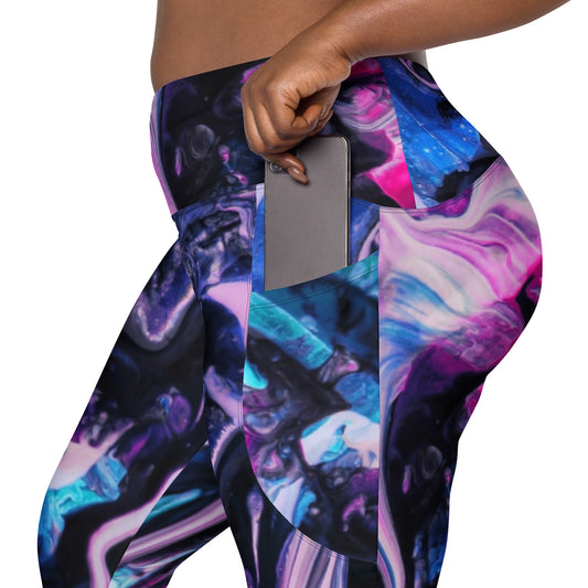 Side pocket leggings-Paint Pour