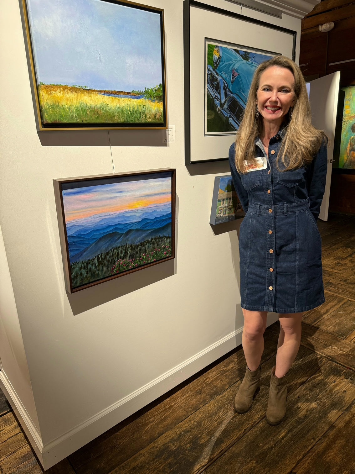 This painting "Hope from the Heavenly Mountains" features the iconic Blue Ridge Mountains near Asheville, North Carolina, which suffered from Hurricane Helene October 2024. Even after the storm, the pinky skies and soft, blue mountains create a timeless, extraordinary view and hope for brighter days. This painting offers testimony of the resilience of the natural world, and reassurance that our best days are still ahead.